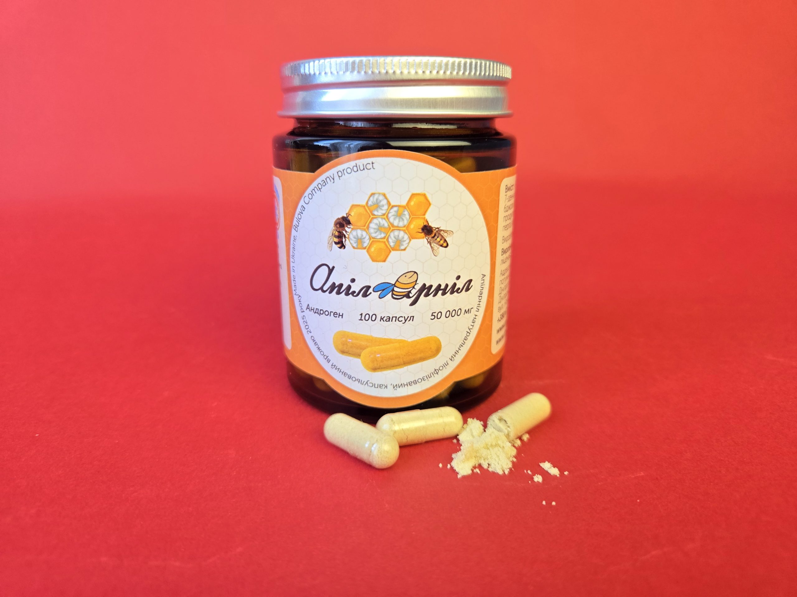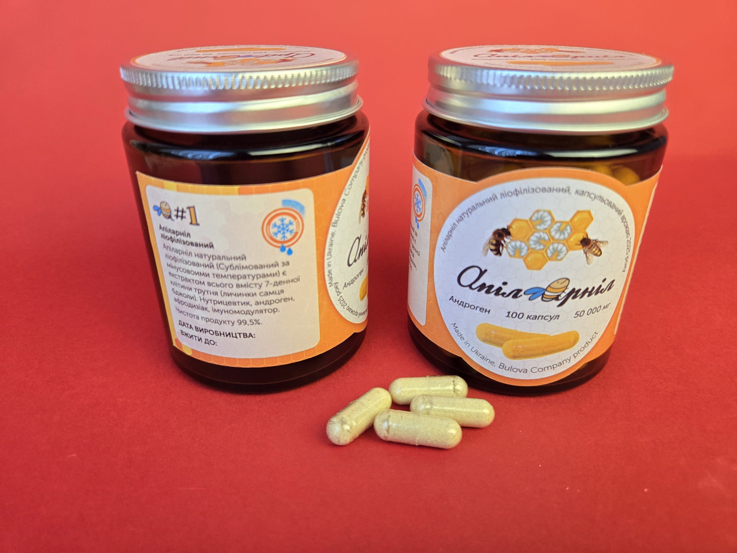 Apilarnil natural lyophilized (sublimated at negative temperatures) Captured (1 The capsule contains 500 mg of snap) is an extract of the entire contents of a 7-day-old drone cell (male bee larvae). Nutraceutical, Natural androgen.