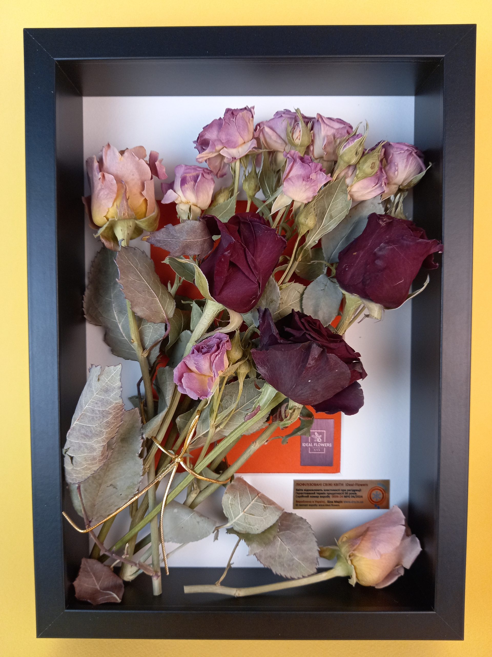 Flower compositions of freeze-dried flowers from IDeal Flowers are works of art, each flower creation by IDeal Flowers has a recorded history of creation, from fresh cut flowers to freeze drying and florist wizardry, which is stored in the electronic passport on the official website of IDeal Flowers, by its own unique ID number of each composition, that is indicated on the product label.
