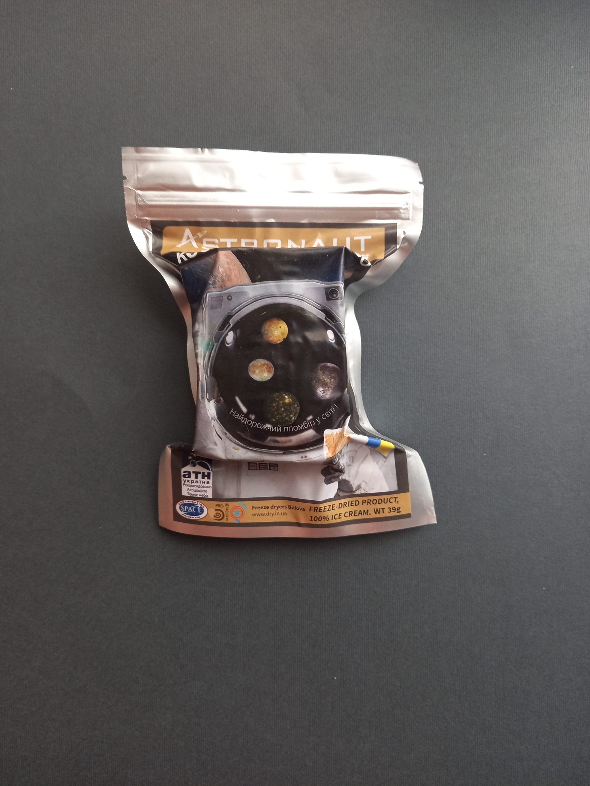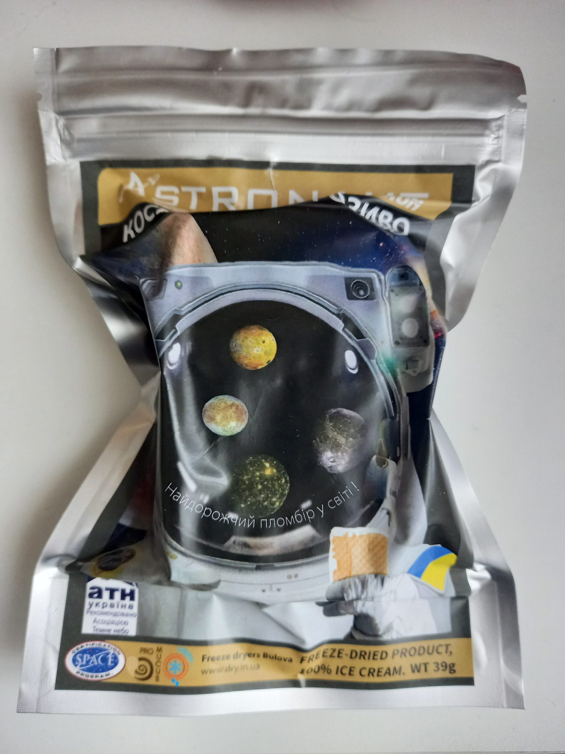 Продукт ліофілізований і не містить консервантів. Це натуральний продукт, справжнє морозиво – пломбир, що сублімоване у вакуумі.