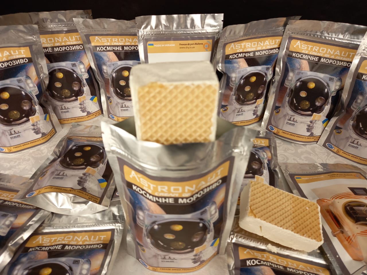 Найбільш брендовим космічним сублімованим продуктом на Землі стало – космічне сублімоване морозиво – класичний пломбір, виготовлений за технологією приготування їжі для астронавтів. Це звичайне морозиво, з якого була видалена волога (і кисень теж) за допомогою процесу ліофілізації.